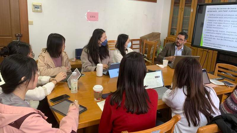 12月9日,佩特里尔森教授在虹口校区为葡语专业教师和研究生开展讲座,题为“多元识读设计视角下互联网检索的思考与外语教师培训”。他从多元识读理论出发,以外语师资培训为背景,对外语教学过程中如何科学有效地使用互联网资源进行了细致的讲解。讲座讨论了当下我们网络生活面临的矛盾和困境,介绍了如设置搜索关键词、评估信息质量、调查信息背景、考察信息内容等方法,旨在帮助师生以科学的理论框架分辨网络信息质量,以批判性思维对抗网络假新闻。