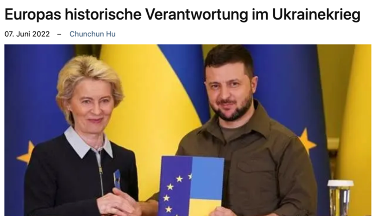 丹麦政论平台 Solidaritet 2022年6月16日发表丹麦文版(由Klaus Schulte教授从德文转译),标题:“中国认为欧洲为战争负有历史性责任”